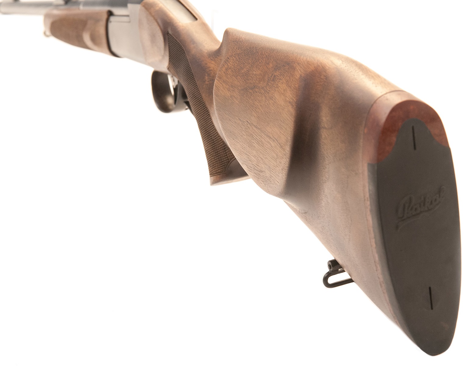 Приклад выполняется в классических европейских стилях: с прямым гребнем, "Монте-Карло" или "кабанья спинка", дополняемая рельефной "баварской щекой". Удлиненная шейка приклада типа "Принц Уэльский" имеет плавный изгиб и выемки по обеим сторонам, предназначенные для размещения основания большого пальца стреляющей руки. На окончании приклада установлен комбинированный затыльник. На цевье и шейке приклада в зоне хвата насечка нанесена лазером. По сравнению с классическим методом несения резцом это позволяет сделать насечку более "агрессивной", стойкой к влаге и износу. Съемные антабки с основанием типа Unсle Mike’s на ложе.