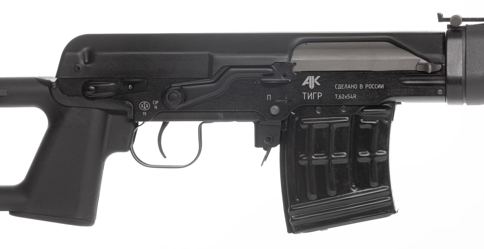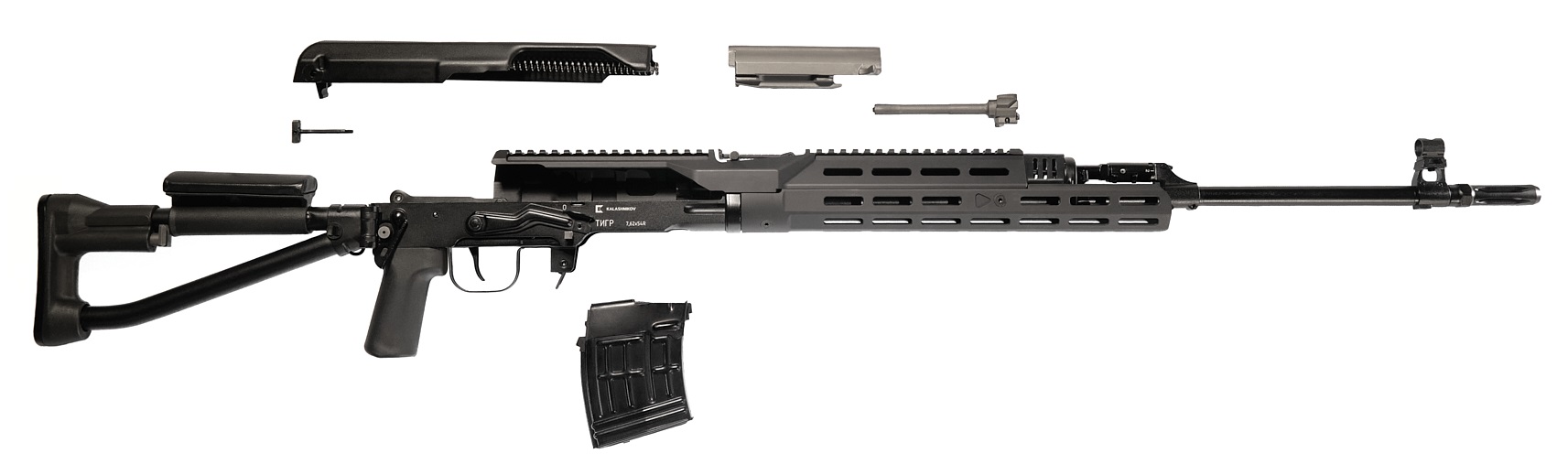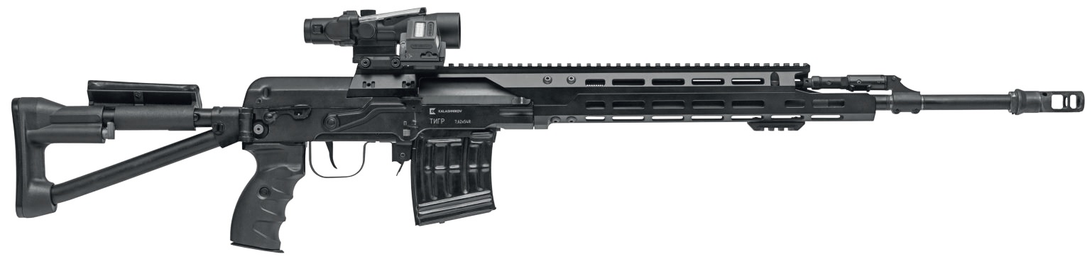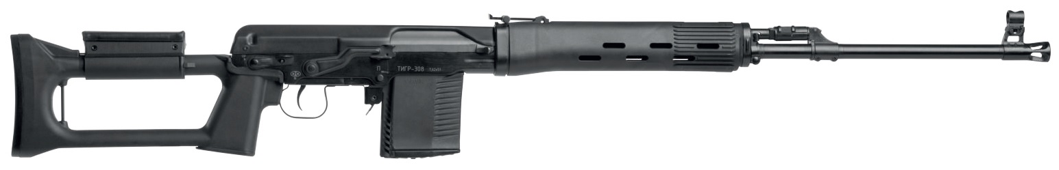 Карабин Тигр представляет собой охотничий самозарядный карабин, созданный на базе снайперской винтовки Драгунова (СВД) и предназначенный для охоты на крупного и среднего зверя. Производится на заводе АО «Концерн Калашников» в городе Ижевске (бывший ИЖМАШ). Разные модификации карабина Тигр в разные годы выпускались под патроны: 7.62x54R, .308 Winchester, 30-06 Springfield и 9.3х64. Главным отличием карабина "Тигр" от винтовки СВД является более пологий шаг нарезов (320 мм), оптимизированный для использования более тяжёлых пуль. Благодаря газоотводной автоматике карабин позволяет быстро и точно сделать повторный выстрел или серию выстрелов. Канал ствола и патронник хромированы для повышения ресурса и стойкости к коррозии.