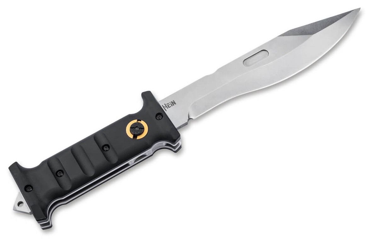 Клинок Extension Knife фиксируется большим поперечным болтом как в открытом, так и в закрытом состоянии. Поперечный болт также можно ввинтить в рукоятку без инструментов для еще большей устойчивости как в открытом, так и в сложенном состоянии.