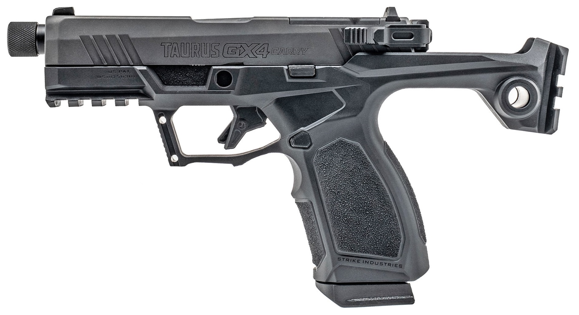 Модель GX4 Strike Bravo - это результат сотрудничества компании Taurus и производителя аксессуаров для огнестрельного оружия Strike Industries. В его основу положен популярный пистолет Taurus GX4 калибра 9x19 с полимерной рамкой, который использует модульное шасси для компонентов управления огнем. В случае Strike Bravo полимерная “рама” представляет собой шасси с удлинителем для установки пистолетных аксессуаров, этот удлинитель содержит планки Пикатинни.