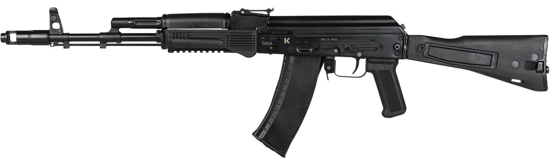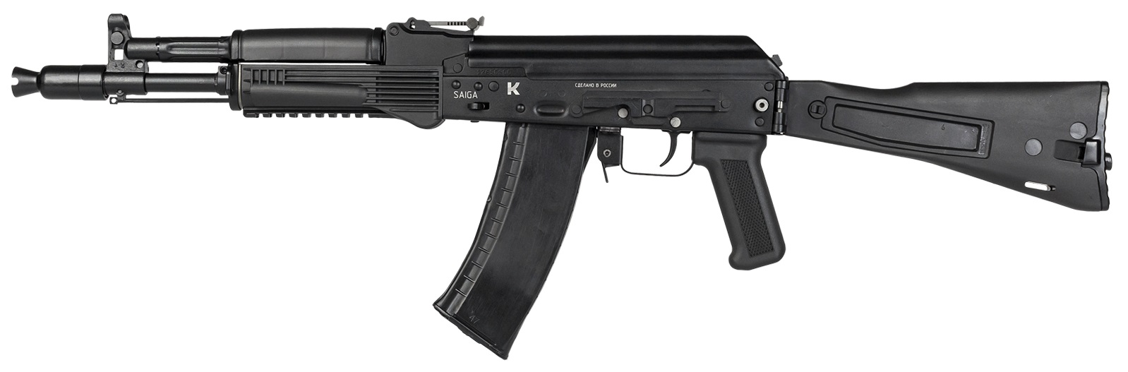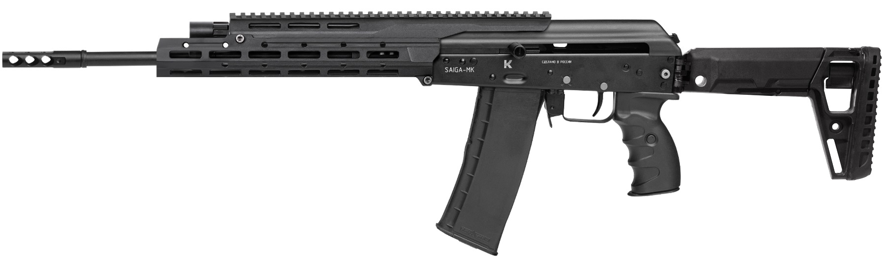 - Сайга МК — модификация нарезного карабина Сайга с укороченным стволом, длиной 336 или 415 мм и наличием блокировки возможности стрельбы со сложенным прикладом. Создан на базе автомата АК-74М и его дальнейших модификаций АК-101 и АК-103.