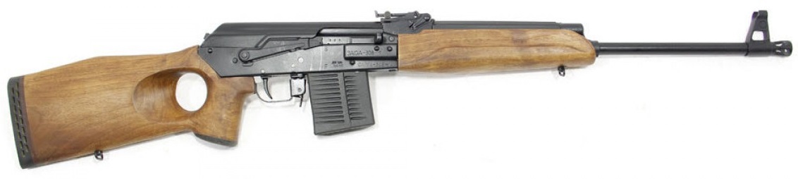 - Сайга 308-1 исп. 21 конусный короткий ДТК, ортопедический приклад с вырезом под большой палец, длинное цевьё, дерево.