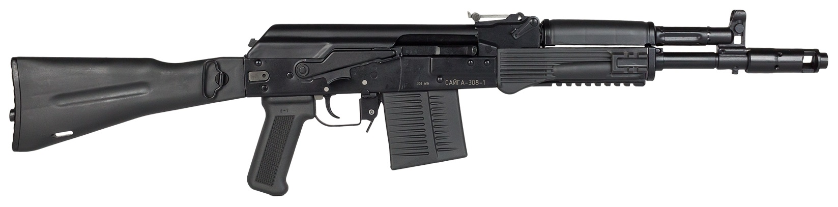 - Сайга-308 исп. 61 складной пластиковый приклад, внешним видом похож на автоматы Калашникова 100 серии, длина ствола 415 мм.