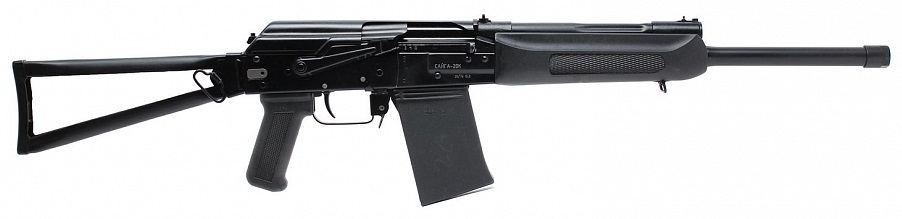 "Сайга-20К" - выпускается с укороченным стволом, рукояткой ведения огня и складывающимся прикладом. В карабине "Сайга-20К" имеется устройство блокировки ударно-спускового механизма, исключающее возможность ведения огня при сложенном прикладе. "Сайга-20К" может использоваться в охранной деятельности и самообороне.